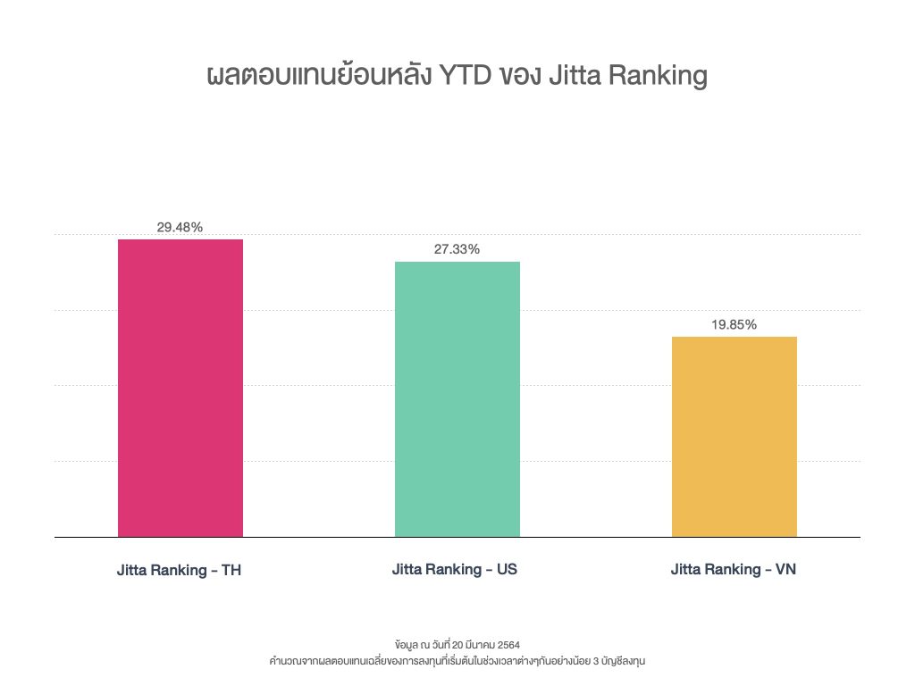 ส่วนผลตอบแทนของกองทุนส่วนบุคคล Jitta Ranking ก็เติบโตได้ดี ที่โดดเด่นคือ หุ้นไทยที่กำลังฟื้นตัวจากราคาที่ลงหนักช่วง Covid-19 ระบาดรอบแรก ตามมาด้วยหุ้นสหรัฐฯ และหุ้นเวียดนาม