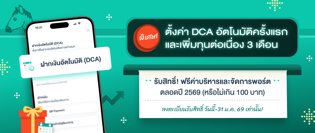 พิเศษต้อนรับปีใหม่! ตั้งค่าฝากเงินอัตโนมัติ (DCA) วันนี้ ฟรีค่าธรรมเนียมตลอดทั้งปี 2569