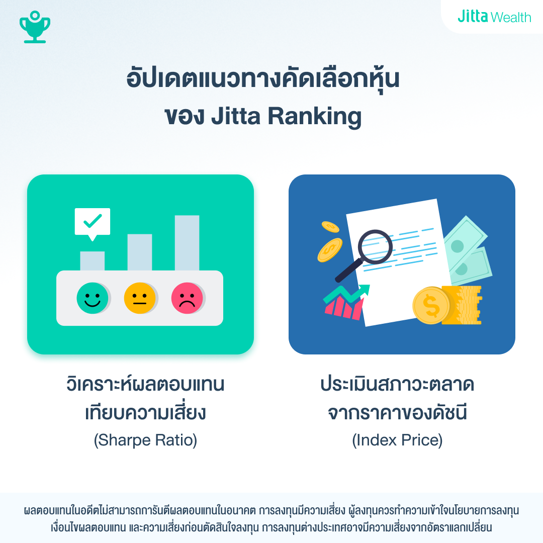 ในปี 2569 นี้ เราได้เพิ่มการวิเคราะห์ผลตอบแทนเทียบความเสี่ยง (Sharpe Ratio) และการประเมินสภาวะตลาดจากราคาของดัชนี เพื่อเสริมความแม่นยำและลดความผันผวน ให้กับนักลงทุน Jitta Wealth
