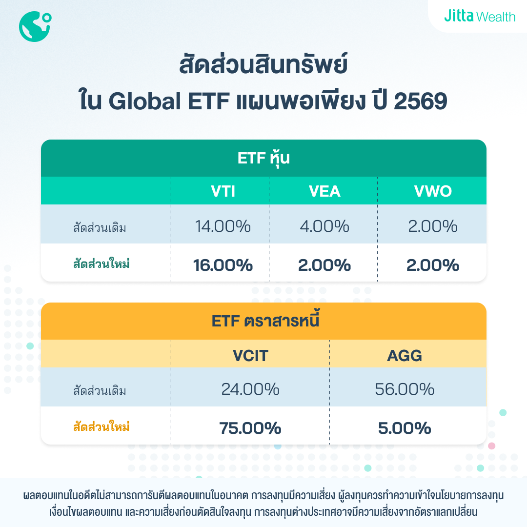 การอัปเดตสัดส่วนการลงทุนของ Global ETF แผนพอเพียง จะเริ่มปรับสัดส่วนของพอร์ตที่ลงทุนอยู่ตั้งแต่วันที่ 1 มกราคม 2569 เป็นต้นไป