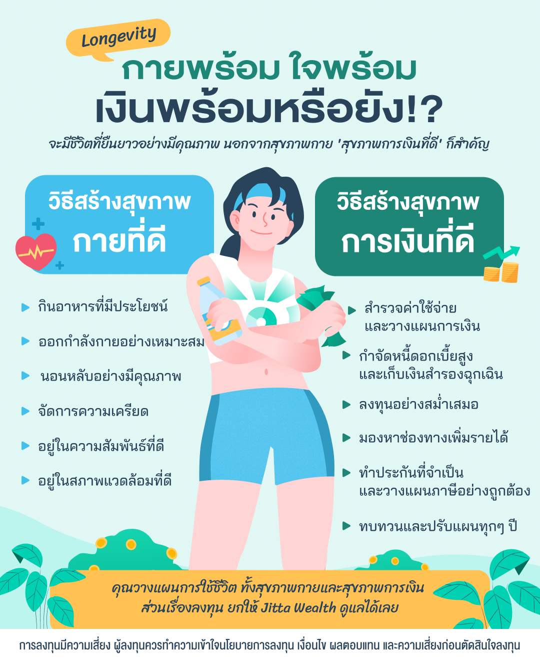 ดังนั้น นอกจากการดูแลสุขภาพกายและใจแล้ว การดูแลสุขภาพทางการเงินก็สำคัญไม่แพ้กัน เพราะหากคุณมีอายุยืนยาว แต่ไม่มีเงินใช้ ก็คงเป็นเรื่องที่น่าเศร้า